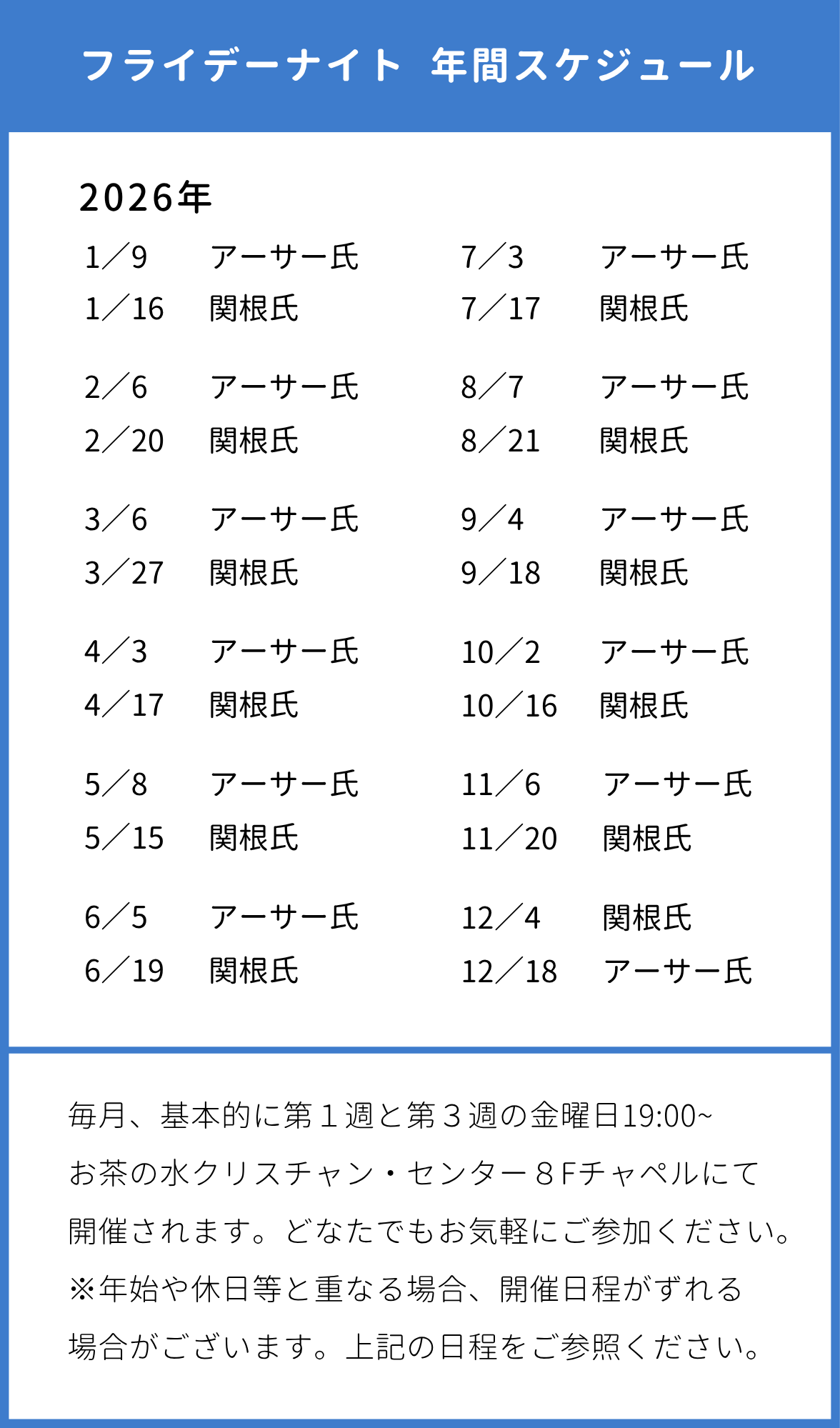 お茶の水クリスチャン・センター主催集会として