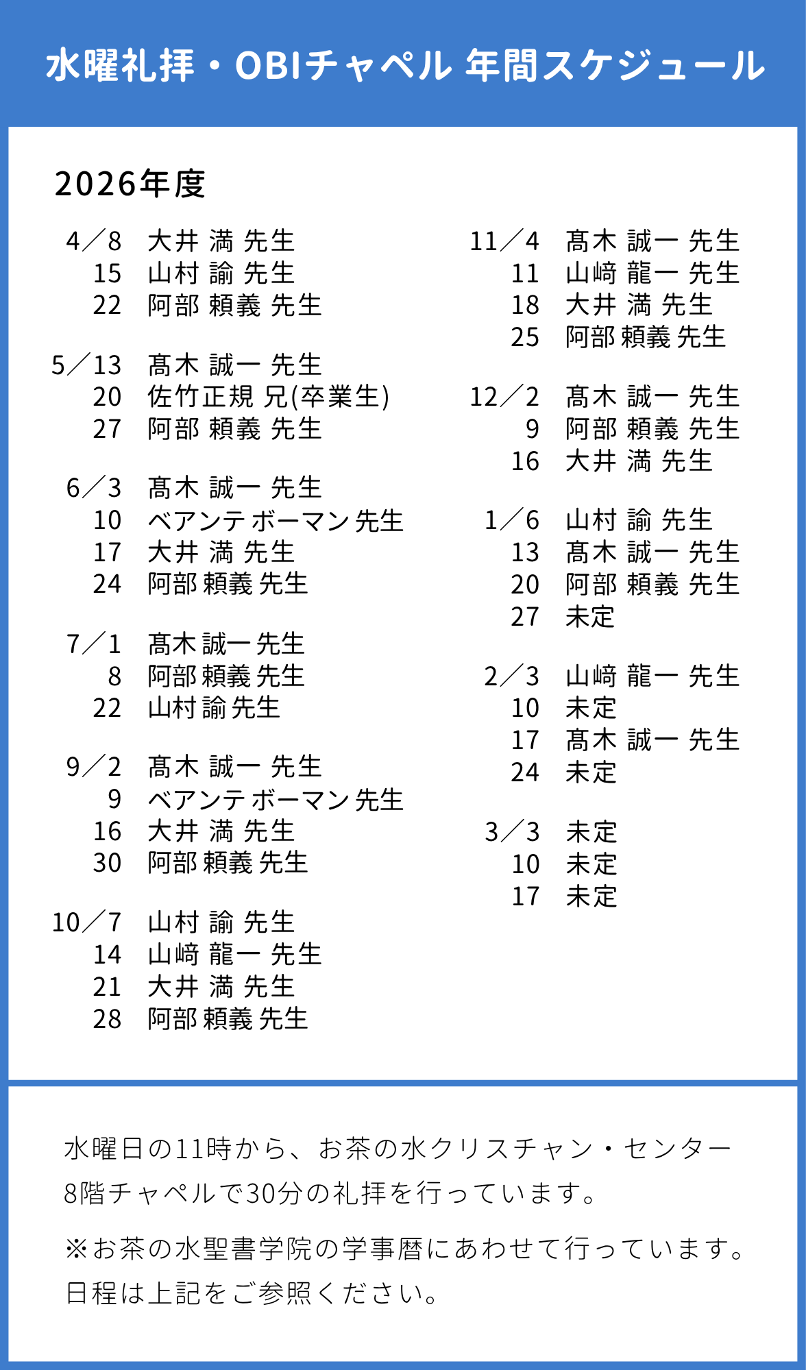 水曜礼拝・OBIチャペル