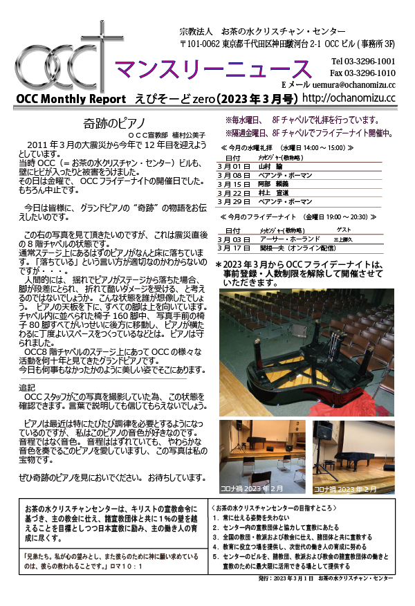 お茶の水クリスチャン・センター8Fチャペルにて開催されます。