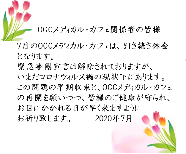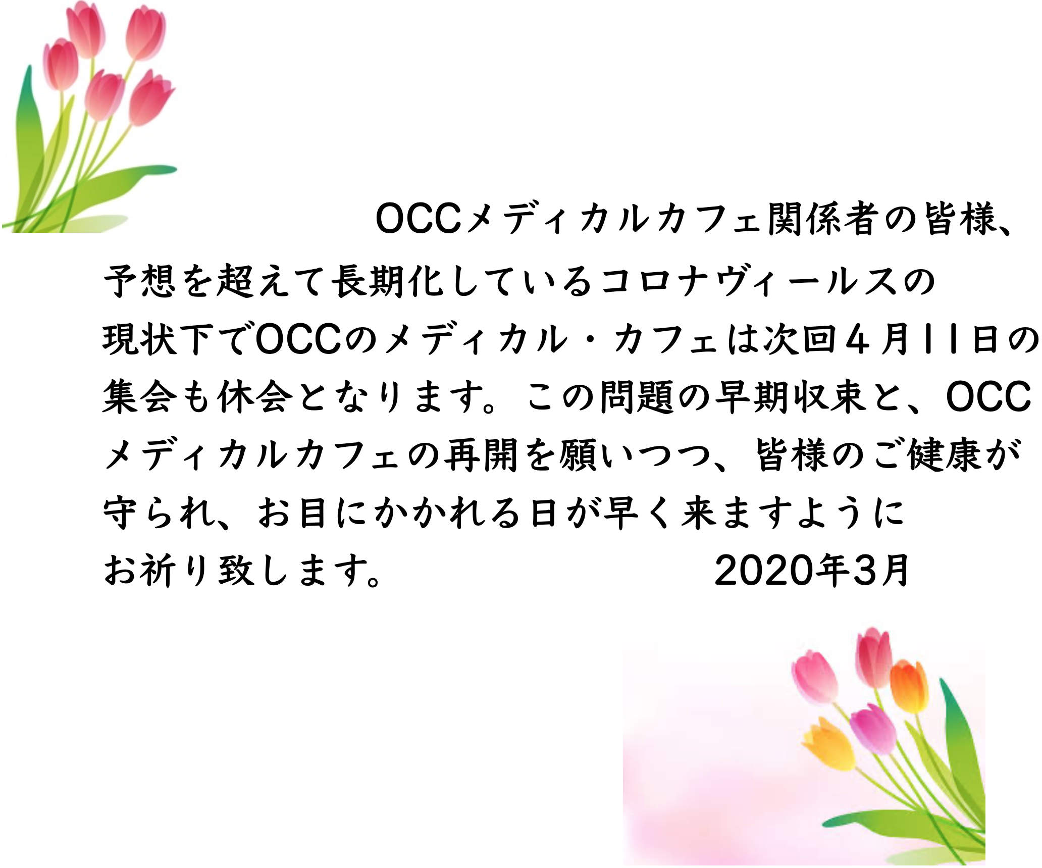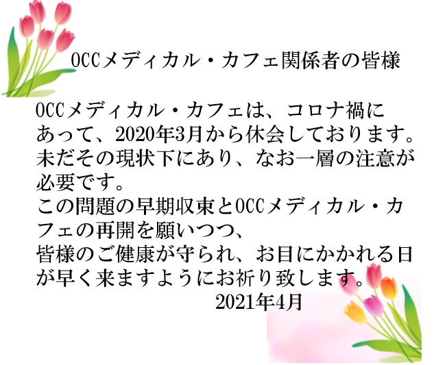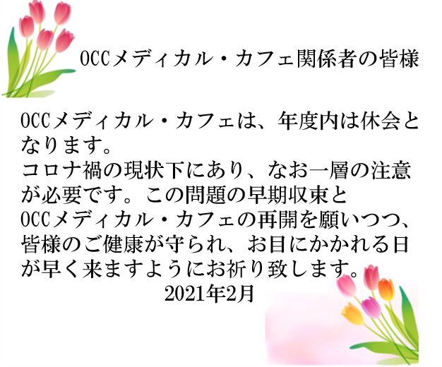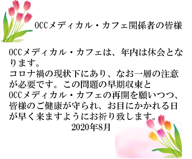 OCCとしてもこれから長く、安心してメディカル・カフェを開催し続けたいと思っています。皆様が安心して集まれる状況を最優先にしつつ開催を継続したいと願っています。